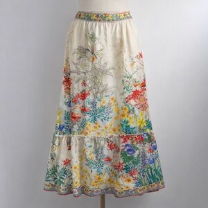 Johnny Was Silk Multicolor Floral Maxi Skirt