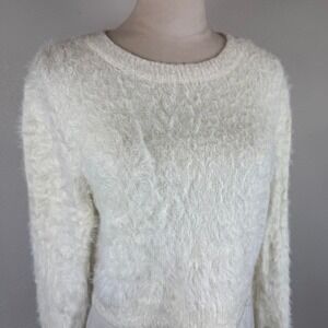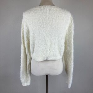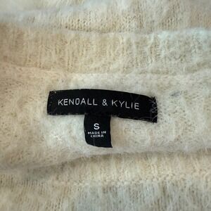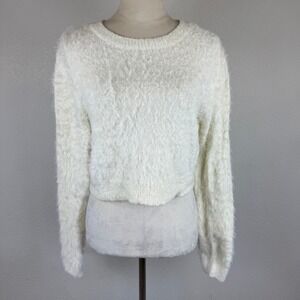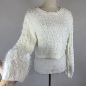 Kendall & Kylie Ivory Fuzzy Knit Crop Luxury Sweater Long Sleeve Womens Sz Sm