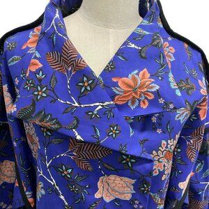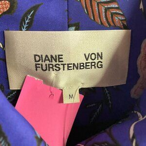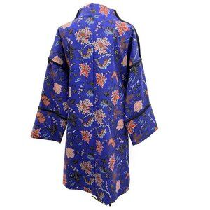 Diane Von Furstenberg purple w/pink floral wide cuff sleeves kimono raincoat retail $798, Size M