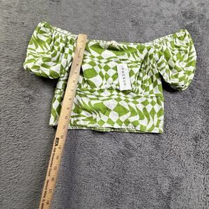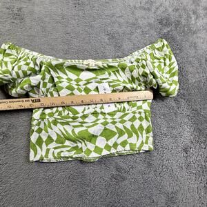 LA Hearts PacSun Green White Smocked Puff Sleeve Crop Top Small NWT Beach Boho