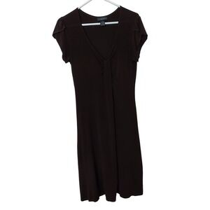 Elementz Brown Dress Medium V-Neck Tie Front Flutter Sleeve Polyester Blend