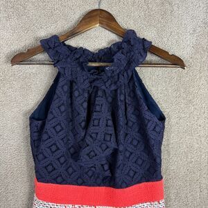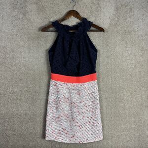 Milly NY Dress Sheath Dress 4 Navy Halter Neck Lace & Tweed Boucle Sleeveless