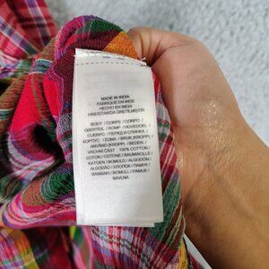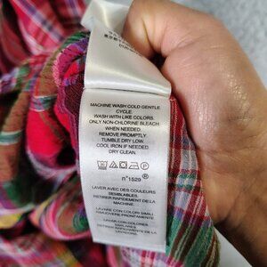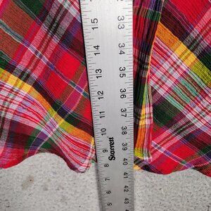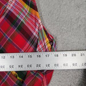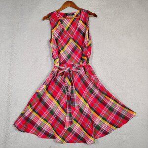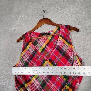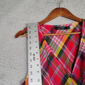 Lauren Ralph Lauren Midi Dress Women's 12 Red Multi Plaid Crinkle Surplice Neck