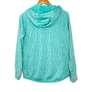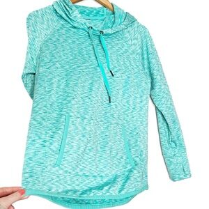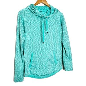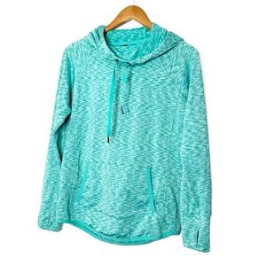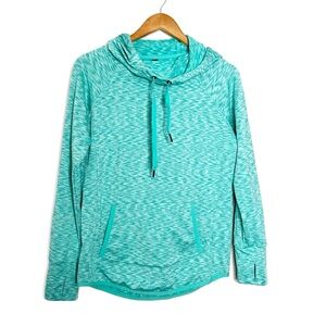 90 Degree Activewear Turquoise Marled Hoodie Thumbhole Pockets Drawstring