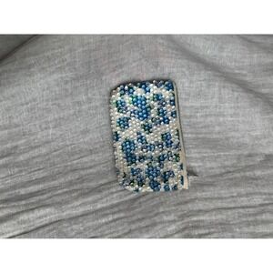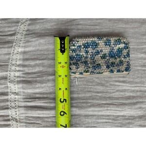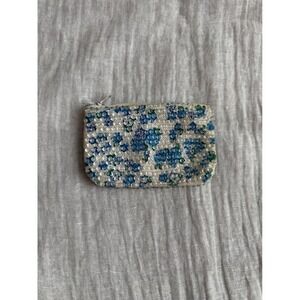 A charming small beaded coin purse featuring a delicate blue floral pattern. This versatile pouch is perfect for storing coins, cards, or other small essentials. Its compact size makes it ideal for carrying in a larger bag or for a night out.