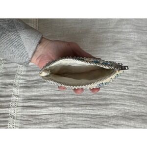 Vintage Small Beaded Coin Purse Pouch Blue Floral Clutch Wallet