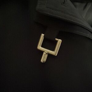 Metal clasp decoration at collar