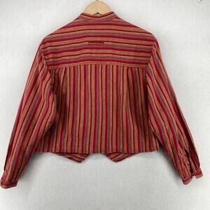 LIZWEAR Shirt S Striped Mandarin Collar Button Up Long Sleeve Blouse Red Gold Vintage