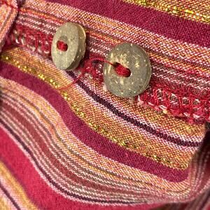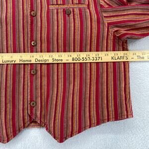 LIZWEAR Shirt S Striped Mandarin Collar Button Up Long Sleeve Red Gold Vtg