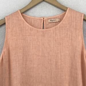 MAGIC LINEN Dress L Royal Toscana Linen Shift Tank Sleeveless High Low Midi Peach Pink