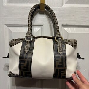 Fendi White and Brown Satchel