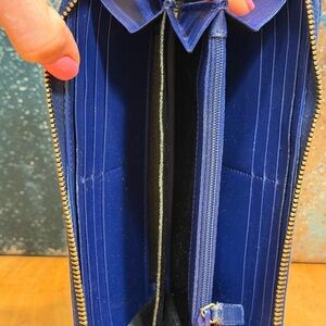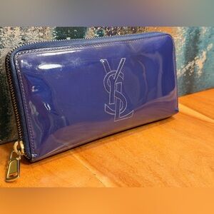 Yves Saint Laurent YSL Blue Patent Leather Belle De Jour Zip Around Wallet (EUC)