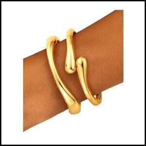 Brand new, never worn, and in flawless condition — this set of chunky gold bangle bracelets delivers a trendy, sculptural look perfect for daily wear, work, parties, or special occasions. The stackable design and polished finish create versatile, high-end layering options.