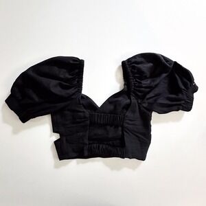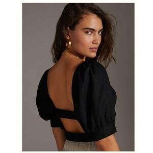 NWT Anthropologie Black Crop Top Puff Sleeve Blouse Criss Cross Open Back Party