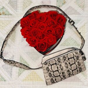 Snakeskin Print Crossbody Wallet Bag Neutral Vegan Leather