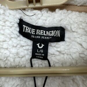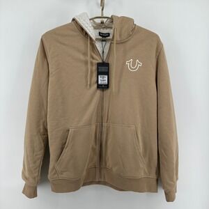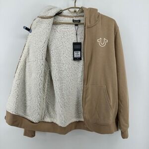 $164 NWT True Religion Mens LG True Sherpa Full Zip Hoodie Travertine Tan Buddha