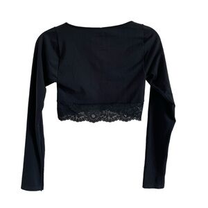 By Anthropologie Lace Trim Cutout Long Sleeve Crop Top Black Size XXS / XS Goth