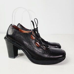 BCBG MaxAzria Y2K Retro Cottagecore Lace up Square Toe Black Leather Heels 6B