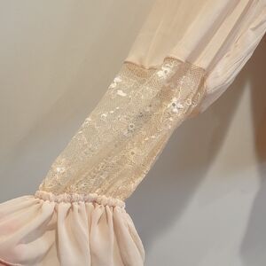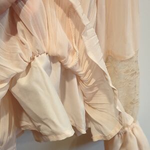 Keywords: Elegant, feminine, luxury, quiet luxury, elevated basic, neutral, capsule wardrobe, business profession, business casual, office, peach blouse, cream blouse, pink blouse, lace top, ruffle top, ruffle blouse, lace blouse, peplum, peplum top, peplum blouse, balletcore, cottage, cottagecore, prairie, prairiecore, Doen, Wren, free people, anthro, anthropologie, festival, coachella, family photos, boho, bohochic, bohemian, pirate, costume, romantic, vintage, retro, 1970s, 70s, seventies, whimy, whimsical, whimsygoth