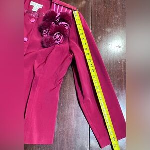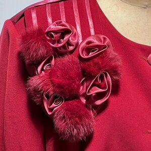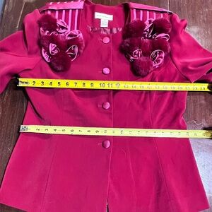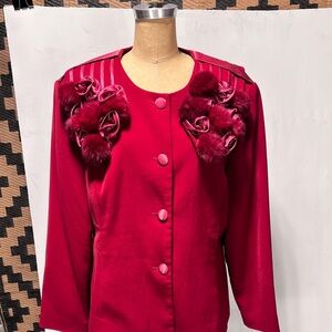 VINTAGE 80s dressy jacket removable fur collar satin rosettes blazer coat formal