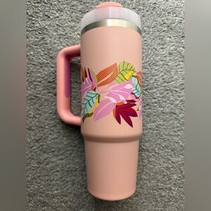 Stylish pink mug with vibrant floral design. Perfect for hot or cold drinks. Good condition, barely used. No straw. 30 ounce
