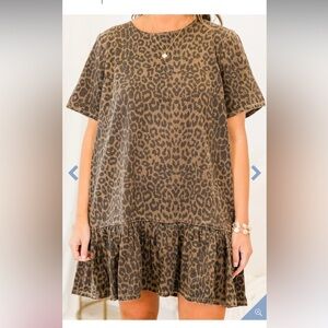 Chic Soul Denim Brown Leopard Print Short Sleeve Dress