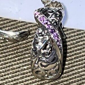 STERLING SILVER PAVE AFRICAN AMETHYST INFINITI HOOP EARRINGS