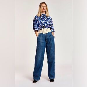 ESSENTIEL ANTWERP Blue Leopard Print Puff Sleeve Top