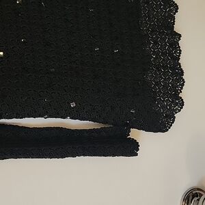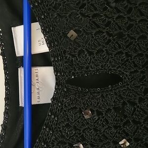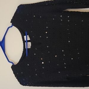 EMMA JAMES Beaded Crochet Overlay Keyhole Scallop Peekaboo Sequin Sweater