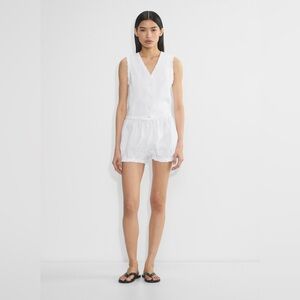 Size xs One button may be a little loose (?) Small button imprint on back This is a lined button-up vest with a ruffled trim and princess seams for shaping. It's made from breathable 100% organic linen with a natural texture and soft, airy feel