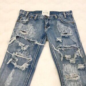 One Teaspoon 25 (3) Trashed Free Birds Women’s Jeans Low Waist Rigid Skinny Leg