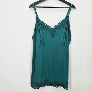 NWOT Lane Bryant Tank Top 22/24 3X Green Lace Trim Cami Babydoll Y2K Vibes Retro