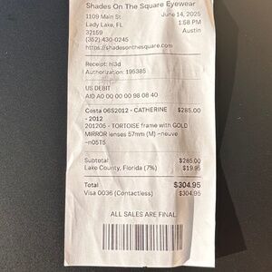 Original Receipt dated: 6/14/2025