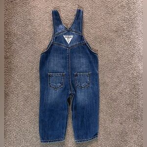 OshKosh B'gosh heart pocket denim overalls with functional snap plackets and adjustable shoulder straps. Heart pocket. Size 9 months