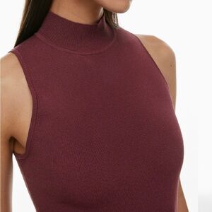 Aritzia Babaton Sculpt Knit Mockneck Sleeveless Burgundy Midi Dress XS NWT
