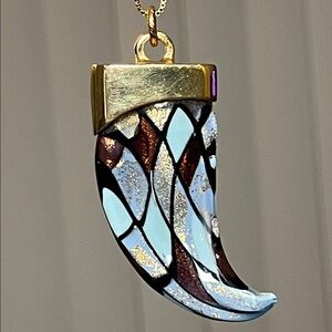 Artisan Hand Blown Glass Aventurine Bear Claw 14k Gold Plated Pendant Necklace