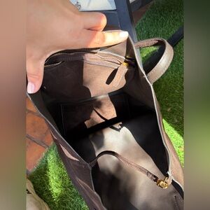 This elegant brown tote bag is perfect for any occasion. Its sleek design and rich color make it a versatile accessory for your wardrobe. Used once on a trip