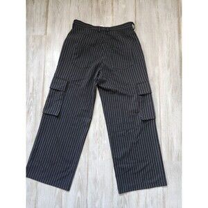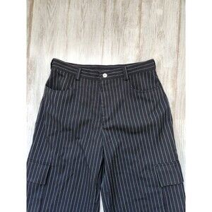 Asos Collusion Cargo Pinstripe Wide Leg Pants Black White High Rise Sz 34 EUC