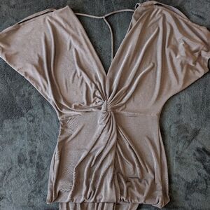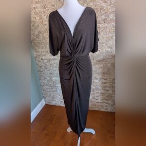 Revolve ASTR The Label Kiera Black Draped Midi Wrap Knot Dress Charcoal Sz Med