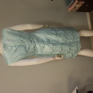 Chic sleeveless dress in a aqua shade. Features a stylish cutout neckline and floral pattern.
