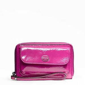 Coach 1941 Peyton Patent Leather Wristlet Zip Around Wallet Magenta Pink Coach