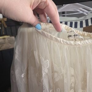 This elegant cream lace skirt is perfect for any occasion. Its delicate design adds a touch of sophistication to your wardrobe.