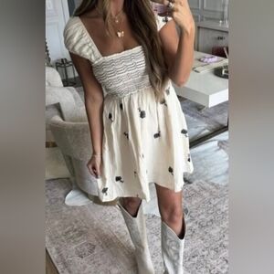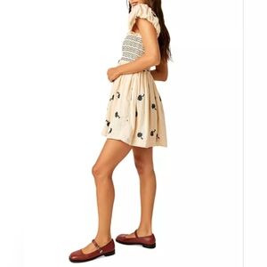 FREE PEOPLE Tory Embroidered Mini Dress Ivory Medium NEW Boho Chic