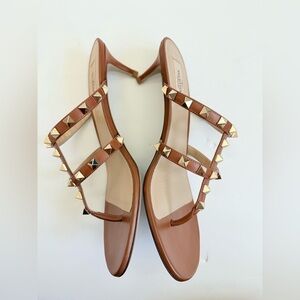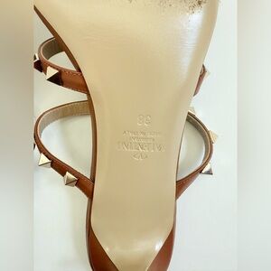 Valentino Garavani Brown Leather Caged Rockstud thong kitten heel sandals EU 38