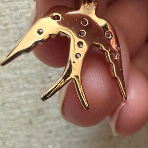Chic bird/dove gold charm necklace by Stella & Dot. Adds a touch of elegance. Gold toned metal. Gold behind Pavé crystals is darker in appearance.