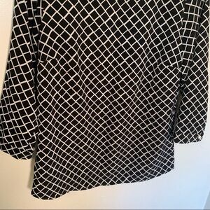 Great condition. The Limited. Boatneck blouse. 3/4 sleeve. Buttons at shoulders. Black and white window paid/ checkered pattern. Size XS. 100% polyester. Pit to pit laying flat 17” Shoulder to hem 24” Sleeve (pit to hem) 13.5”. All measurements are approximate and taken lying flat. Smoke free home. No trades, offers welcome.