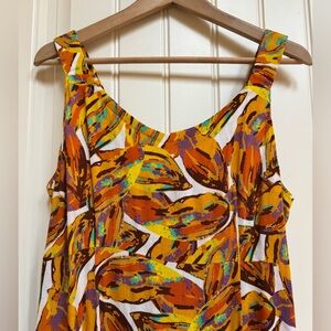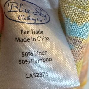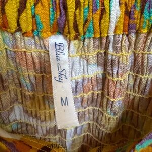Blue Sky Yellow Tropical Linen Banboo Blend Sun Dress with Pockets. Size M