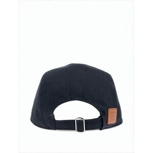 The structured cotton cap by Loewe is a refined accessory that merges casual style with sporty elegance. Crafted in Italy, it features a deep navy base complemented by raised embroidery of the brand name in a contrasting brown hue. The curved brim enhances its modern silhouette, while an adjustable strap at the back ensures a customizable fit, accented with a small leather patch detail. This cap embodies a sophisticated leisure aesthetic, making it the perfect addition to any contemporary wardrobe.
