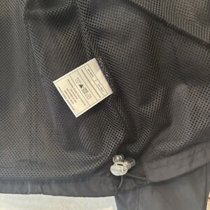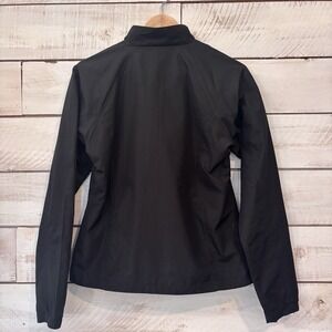 This is a women's black Antigua San Francisco Giants baseball windbreaker in size small, commemorating the team's victory in the 2010 World Series. It is a jacket specifically designed for fans of the San Francisco Giants, featuring the team's colors and logo. Perfect for baseball enthusiasts looking to represent their favorite Major League Baseball team and celebrate their championship win.