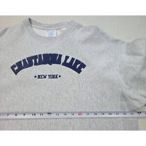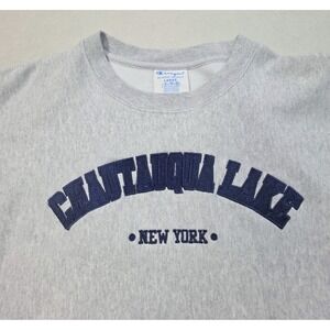 Y2K Champion Chautauqua New York Sweatshirt L Gray Blue Embroidered LIMITED USE